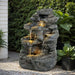 4 Tiered Rock Waterfall Fountain With LED Lights, Outdoor Garden Decor, Weather Resistant - Gray