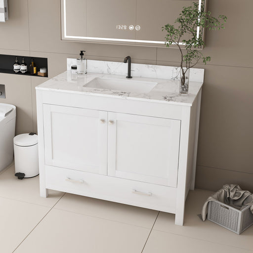 Original price $889.99Original price $889.99 - Original price $889.99Original price $889.99Current price $599.99$599.99 - $599.99Current price $599.9943" Bathroom Vanity With Artificial Marble Carrara Top Set, Multi Functional Cabinet With Doors And Drawer - White