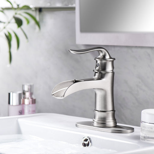 Original price $199.99Original price $199.99 - Original price $199.99Original price $199.99Current price $129.99$129.99 - $129.99Current price $129.99Waterfall Spout Bathroom Faucet With Single Handle And Pop Up Drain - Brushed Nickel