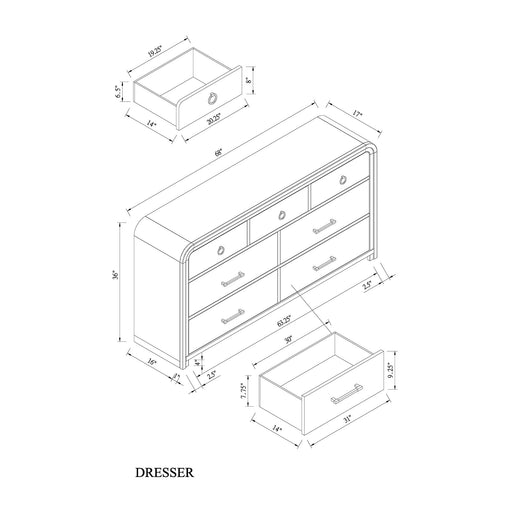 AcmeElegant Design: The Maverick Platinum Finish Dresser combines elegance and functionality, featuring nine spacious drawers ideal for ample sto...