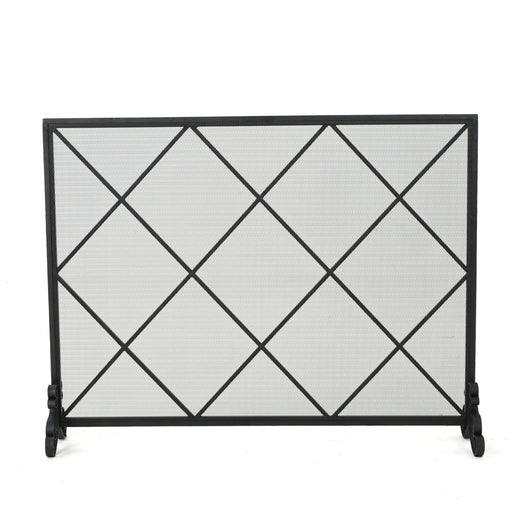 Minimalist Single Panel Iron Fireplace Screen With Diamond Design