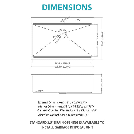 Daily NestDouble Bowl: 33" design allows efficient multitasking with separate cleaning areas. Premium Construction: Made from 16 Gauge T-304 Stainless Steel...