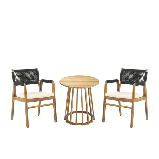 Noble HouseStylish Design: The Outdoor Acacia 3-Piece Bistro Set enhances any outdoor space with its modern design, featuring two comfortable chairs with ro...