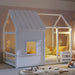 Twin Size House Floor Bed With 7 Color LED Light, Built In Bookshelf - Cream / White