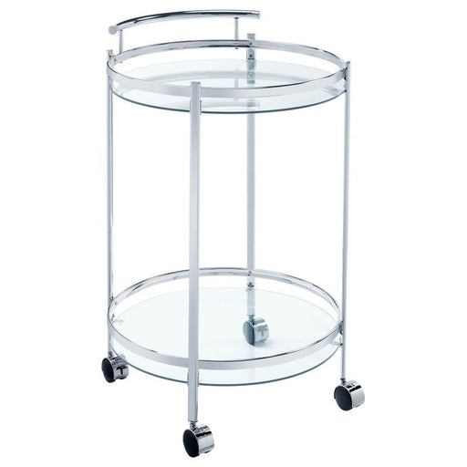 CoasterEverydayChrissy - serving cart Chrissy - Round Glass Shelf Metal Bar Cart - Chrome20.75"W x 20.75"D x 31.0"H - 15.25 lb
