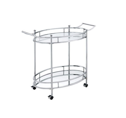 AcmeModern Elegance: This serving cart combines a sleek clear glass design with a chrome finish, offering a modern and elegant look that compleme...