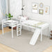 L-Shaped Twin Size Loft Bed With Ladder And Slide - White