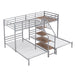 Twin Over Twin & Twin Bunk Bed With Storage Shelves And Staircase, 3 Deck Design - Silver