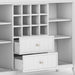 • Features two (2) central drawers with metal glides, two (2) side doors that open to large storage spaces with two (2) shelves each and a twelve (12) bottle wine storage rack.