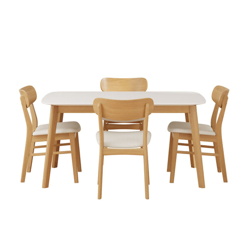 Noble House5-Piece Dining Set: Includes one solid wood frame table and four upholstered chairs for comfortable, spacious dining Mid-Century Modern Design: Cl...