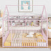 Full Size Bed House Frame With Fence And Shelves - Pink
