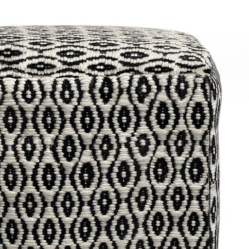 Simpli-HomeDIMENSIONS: 18" D x 18" W x 14" H Upholstered in a hand woven wool Black Melange, White pattern Constructed using 100% wool, Polystyrene Filling S...