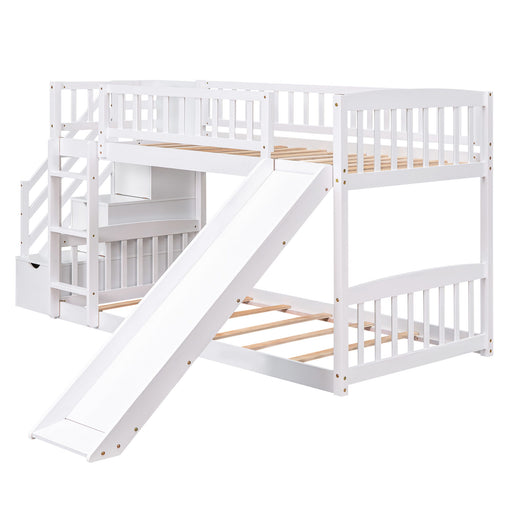 Twin Over Twin Stairway Bunk Bed With Two Drawers And Slide