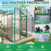 - Heavy-duty & Durable Frame: The 4mm thick polycarbonate board withstands temperatures from -20℃ to 70℃, allowing up to 70% light transmission and blocking over 99.9% of harmful UV rays. The aluminum alloy frame with powder coating ensures rust resistance and durability.