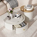 Modern Round Coffee Table (Set of 2), 360 Degree Rotatable Flower Shaped Top With 2 Drawers, Top Circle Side Table End Table With Glass For Living Room - Off White at Bedding & Furniture Discounters Sleep and Furnish for Less: Unbeatable Discounts on Bedding and Furniture in Orlando, FL Skip to content