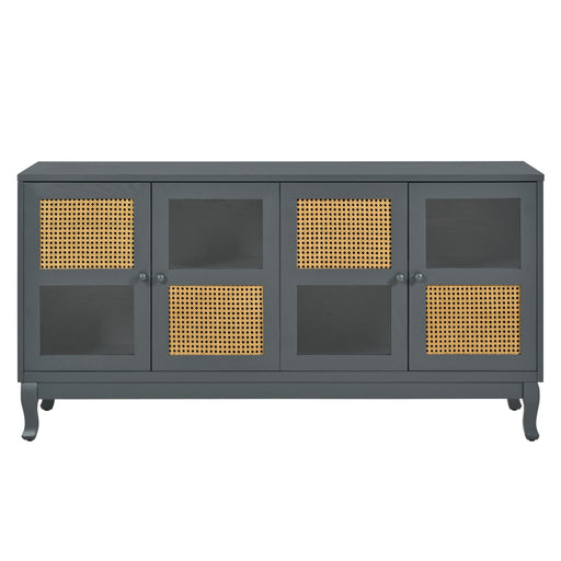 Retro Industrial 4 Door Sideboard With Large Storage, Rattan And Glass Doors