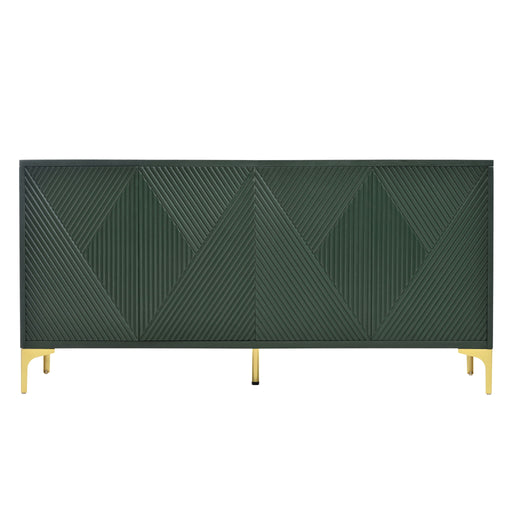 Modern Wood Sideboard Cabinet With Carved Door Panels, Adjustable Shelves, And Sturdy Metal Legs