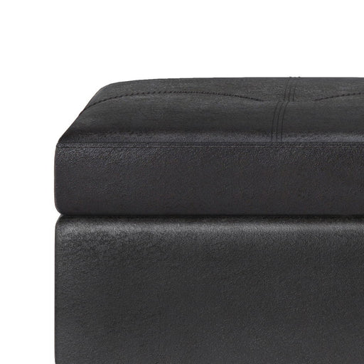 Simpli-HomeHand constructed using solid wood, engineered woods and high density foam Upholstered in a durable Vegan Faux Leather Features large interior stor...