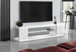 - Chic Glossy Finish: Finished in a sleek, glossy white that offers a bold and modern look, this TV stand effortlessly complements contemporary home decor.