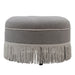 Yolanda - Round Upholstered Accent Ottoman - Light Gray / Ivory