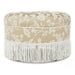 Yolanda - Floral Round Upholstered Accent Ottoman - Champagne Beige / Ivory