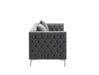 Glam up your living room with the Lorreto Collection! Crafted from fine wood and quality fabrics, this sofa features an abundance of button tufting. The double nail-head trim adds a touch of elegance while the low back adds better lumbar support. Entertain your guests and family members in comfort and style.
