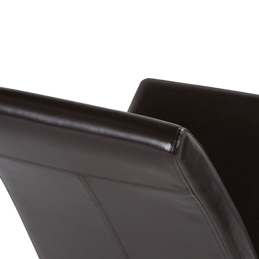 Simpli-HomeHand Constructed using kiln-dried wood, metal, foam and polyester fiber batting Upholstered with a durable Distressed Dark Brown Vegan Faux Leathe...