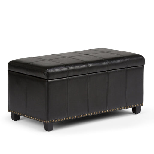 Simpli-HomeConstructed using solid wood, engineered wood, foam Features detail top stitching Large interior storage space with lift top lid, Child safety hin...