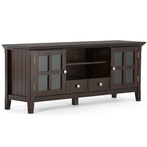 Simpli-HomeDIMENSIONS: 16.5" D x 72" W x 26" H Handcrafted with care using the finest quality solid wood along with tempered glass Hand-finished with a Brune...