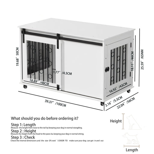 Precio original $249.99Precio original $249.99 - Precio original $249.99Precio original $249.99Precio actual $169.99$169.99 - $169.99Precio actual $169.99Dog Crate With Sliding Barn Door And Side Access, Lockable Wheels For Small To Medium Dogs - White
