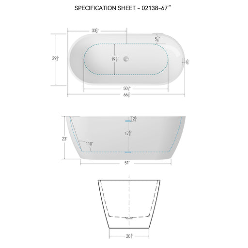 Precio original $3,409.99Precio original $3,409.99 - Precio original $3,409.99Precio original $3,409.99Precio actual $2,279.99$2,279.99 - $2,279.99Precio actual $2,279.9967" Freestanding Solid Surface Bathtub, Luxury Engineered Stone Resin Freestanding Soaking Bathtub With Overflow And Pop-Up Drain Cupc Certified 23S13-67 - Matte White