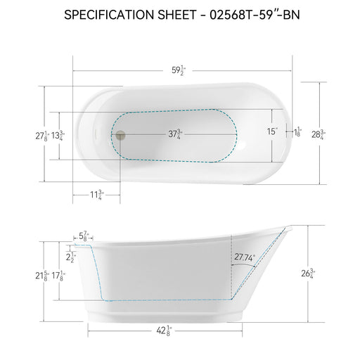 Daily NestSpacious Dimensions: The freestanding bathtub measures 59 inches, offering ample room to stretch out and relax. Repairable: Minor scratches are ea...