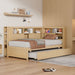 Twin Size Daybed With Storage Shelves, USB Charging, And Trundle Bed - Natural