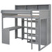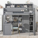 Twin Size Loft Bed With Built In Desk, Storage Shelves, And Wardrobe - Gray