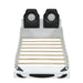 Race Car Shaped Twin Platform Bed With LED Lighting And Upholstered Backrest Construction - White