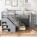 Twin Twin Over Full L Shaped Bunk Bed With 3 Drawers, Portable Desk And Wardrobe - Gray