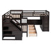 Twin Twin Over Full L Shaped Bunk Bed With 3 Drawers, Portable Desk And Wardrobe - Espresso