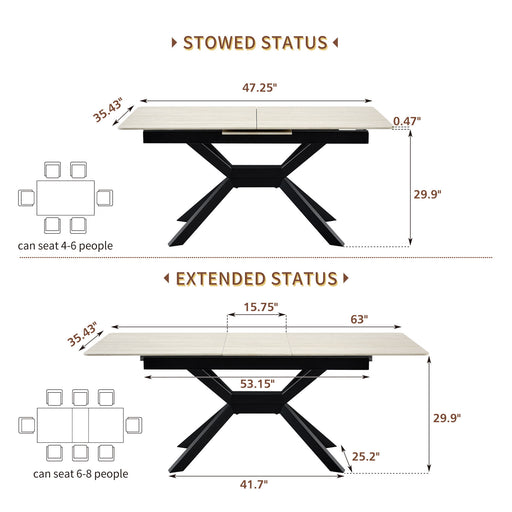 Precio original $1,879.99Precio original $1,879.99 - Precio original $1,879.99Precio original $1,879.99Precio actual $1,279.99$1,279.99 - $1,279.99Precio actual $1,279.99Rectangular Extendable Dining Table With Geometric X Frame, Kitchen Table For Dining Room - Beige