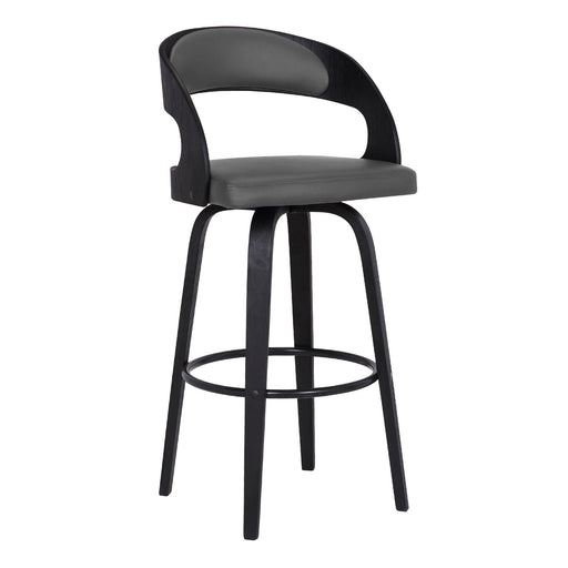 HomeRootsAdd a touch of mid-century modern updated casual to your space with this 26" Black Faux Leather Black Metal and Gray Walnut Open Back Swivel Bar St...