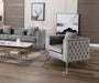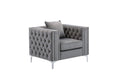 - Glam up your living room with the Lorreto Collection! Crafted from fine wood and quality fabrics, this chair features an abundance of button tufting. The double nail-head trim adds a touch of elegance while the low back adds better lumbar support. Entertain your guests and family members in comfort and style.