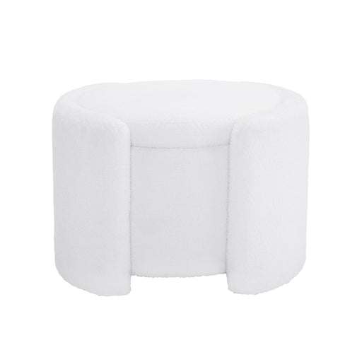 Lumi SourceStylish Design: The Cinch Pouf Ottoman by LumiSource boasts a contemporary styling with bouclé fabric upholstery, adding warmth and an inviting a...