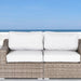 - Durable Construction: Built with a powder-coated aluminum frame and wrapped in woven wicker, this loveseat is designed for durability and style, providing coastal vibes suitable for any porch or patio setting.