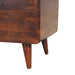 - Curved Chestnut Blanket Box - This curved blanket box is crafted from solid mango wood with a chestnut finish. Its spacious interior effortlessly holds blankets and keepsakes, preserving room tidiness. Versatile in function, it complements various decor styles and can even serve as extra seating or a display surface. Embrace the enduring charm and simple design that this blanket box brings, adding both aesthetic appeal and organization to your living space.