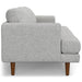 - Sturdy, corner-blocked frame made with solid and engineered woods includes high-quality, high-resilience webbing on the back to provide support; webbing and high-gauge sinuous springs under the seat to prevent sagging; and solid wood legs in a brown finish.