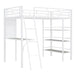 Crafted of metal in a clean painted finish, this metal loft bed strikes a clean-lined silhouette with slatted guardrails. The 3-layer open shelves offer ample space to display whatever you want. Equipped with a large desk and board underneath, this bed provides a comfortable place to work, read, and enjoy yourself. This loft bed will be a beautiful and practical piece in your bedroom.