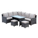 Upgrade your Furniture > Outdoor > Outdoor Sets experience with the Ultra 5-Piece Sectional Dining Set with Cushions. This updated seating arrangement includes an L-shaped sectional, rectangular coffee table, and two ottomans for extra seating that can be conveniently hidden under the table. The comfortable cushions provide a cozy seating experience while the sleek design of the set adds a touch of elegance to your outdoor space. Whether you're enjoying a meal with family or entertaining guests, the Ultra 5-Piece Sectional Dining Set with Cushions is the perfect addition to your patio or deck.. luxury outdoor durable. luxury outdoor durable