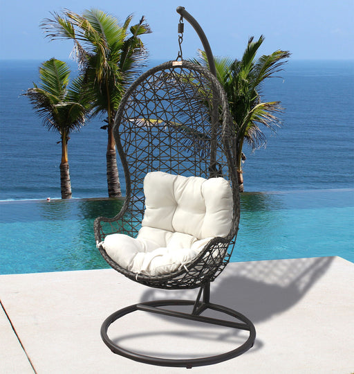 Pelican ReefElevate your outdoor space with the Panama Jack Graphite 2-Piece Hanging Chair with Cushion. Hand-woven with see-through grey fiber over aluminum f...