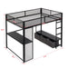 Full Size Gaming Loft Bed With LED Desk, Open Wardrobe, 3 Linen Storage Drawers - Black