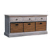 - Artisan Furniture Solid Wood Acid Wash Basket Storage Cabinet - Discover our Acid Wash Basket Storage Cabinet, a perfect blend of sustainability, style, and functionality. Crafted with care, this piece brings a touch of vintage charm to your modern home. It has storage options with 3 drawers + 3 handwoven wicker baskets for shoes, accessories, and more. Perfect to add to the living room or hallway.