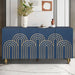 Modern Fluted Sideboard Buffet With Adjustable Shelves, Curve Element With Strict Lines - Navy Blue